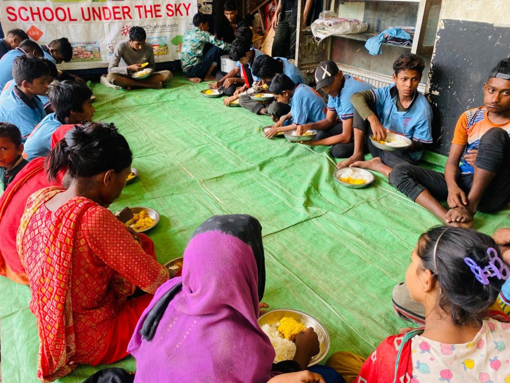 Through Mobile Schools and outreach teams, LEEDO provides cooked meals or healthy snacks to street children at major urban hubs such as Kamalapur Railway Station, Gabtoli, Sadarghat, and Tejgaon. These feeding sessions reduce immediate hunger, while simultaneously building trust and connecting children to education, counseling, and shelter services. - Emergency Relief Food Distribution